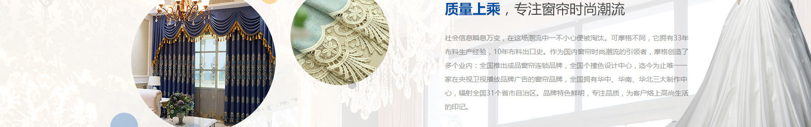 取源于中華悠久紡織文化的摩格(MOONGOOL)品牌,始終堅(jiān)持“健康、時(shí)尚、精致”的產(chǎn)品觀,引領(lǐng)軟裝布藝行業(yè)進(jìn)入高品質(zhì)生活。產(chǎn)品設(shè)計(jì)風(fēng)格融入歐式低調(diào)奢華元素及國(guó)際流行時(shí)尚趨勢(shì),先后開(kāi)發(fā)了古典巴洛克、簡(jiǎn)約洛可可、經(jīng)典中式(新中式)、時(shí)尚地中海、浪漫田園、唯美美式、原木風(fēng)、奶油風(fēng)、現(xiàn)代簡(jiǎn)約風(fēng)九大風(fēng)格系列產(chǎn)品,擁有各種花型、工藝、材料面料達(dá)1500余種。其中窗簾產(chǎn)品作為摩格核心產(chǎn)品頗受消費(fèi)者青睞。采用高精密、棉麻、雪尼爾等上千種布料的摩格窗簾用高端的新興工藝制作,絨面柔軟,織物華麗,九大截然不同的風(fēng)格同時(shí)搭配種類繁多的布類花型和不同的制造工藝,顏色或艷麗或素雅或大氣,簡(jiǎn)約而不簡(jiǎn)單。無(wú)論哪一款窗簾,都在注解不一樣的故事,也詮釋著自己的絕佳格調(diào)。正因?yàn)槿绱?,個(gè)性獨(dú)特和創(chuàng)新思維賦予摩格更多的市場(chǎng)商機(jī)。